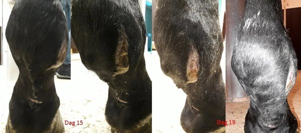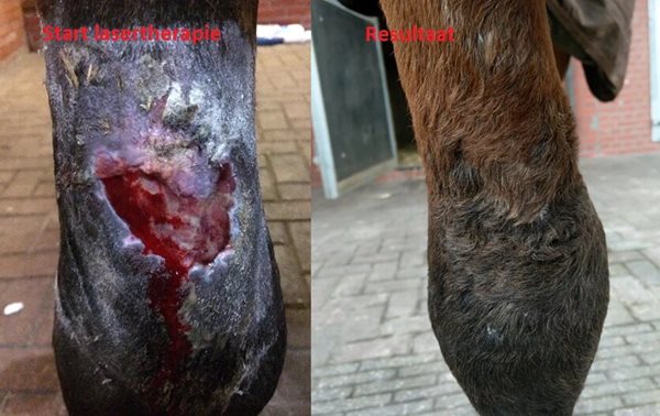 Wondgenezing bij een paard met behulp van onze lasertherapie en verband